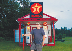Don Crozier of Standish has grown his collection of gas station memorabilia to include former station signs like this lighted one from a Texaco filing station.
