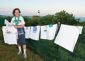 Marti Blair of Cape Elizabeth has kept each of the T-shirts she has earned for running the Beach to Beacon, but on race day, she always wears her son’s old Cape Elizabeth cross country shirt.