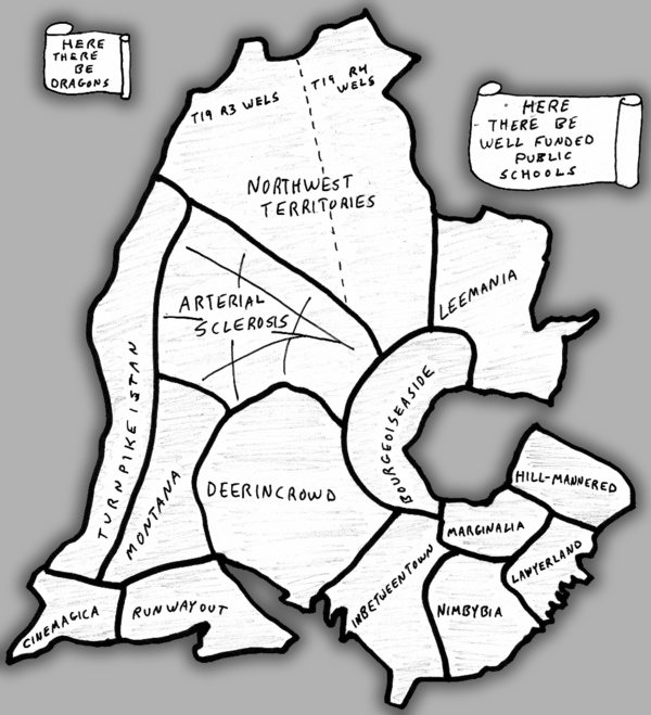 We asked Woodard if he might similarly redraw the map of Portland, and indicate its various regional territories. He stared at us for a few seconds, and then went back to his typing.