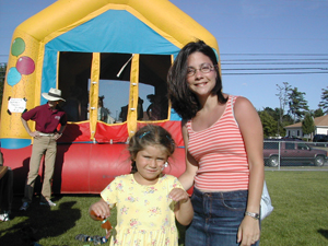 Talya Day and her aunt Kerriann Day wait in line for the moon bounce at the 2002 edition of Summerfest in Scarborough.