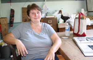 Rita Merrill of the Durham Historical Society at an open house in the Union Church on Saturday.