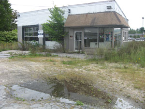 The two-bay, dilapidated old gas station site at 109 Main St, is owned by AMG Investments, according to Gorham tax records. It appears to have been vacant for several years.