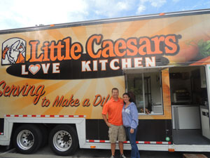 Dave DuBois and his wife Joy DuBois, both of Durham, stand in front of the Little Caesers Love Kitchen, a pizza kitchen on wheels that travels across the United States and Canada meeting the needs of the hungry, the homeless and disaster survivors. The DuBoises, who own Little Caesers stores in Topsham, Bath, Auburn, Lewiston and Augusta, recently worked to provide approximately 1,000 free meals to the Hope Have Gospel Mission in Lewiston and the Bread of Life Ministries in Augusta. “Joy and I were excited to support this program with food and staff to provide a quality meal for people who otherwise may not get one,” DuBois said.