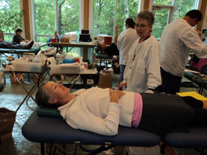 Jennifer Pope rests on a cot while donating blood at the American Red Cross’ blood drive at the Freeport Community Center on Sept. 6. The Red Cross said the drive was a success, with a total of 49 units of blood donated, well over the goal of 36, and a 20 percent increase over the number collected at the Freeport drive last year. For more information on Red Cross blood drives, call 1-800-GIVE-LIFE.