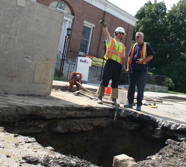 Portland Water District employees inspect an excavation hole near a water main break on Cottage Street in South Portland in August of last year. South Portland has experienc ed nine water main breaks since Aug. 25, and the city has accounted for more than 26 percent of the breaks in the water district system, up from 18 percent in 2011. File photo