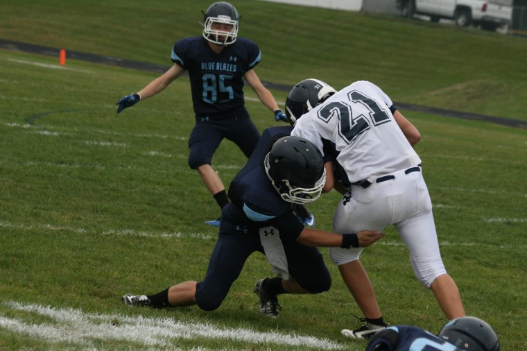 Not to be outdone, Ben Grant rounded out the three-headed Blue Blazes backfield monster with 91 yards and a score on eight carries.
