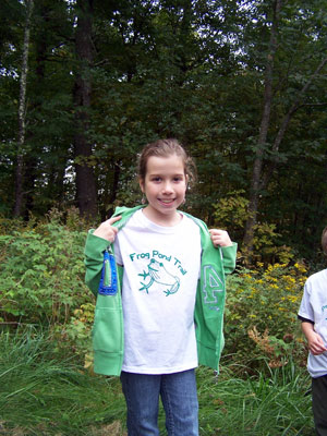 Kaylee Lacasse, 9, shows off the T-shirt she designed for the opening of the Frog Pond Trail.