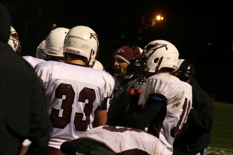 Windham coach Matt Perkins rallies the troops before a key fourth down play in the third quarter.
