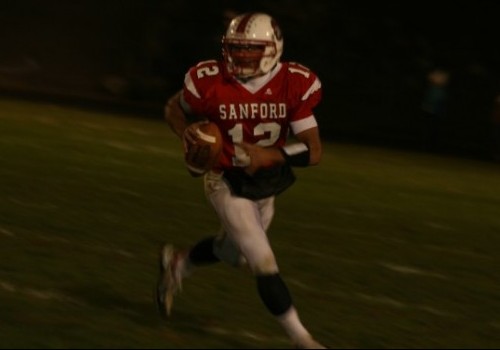 The Spartans stepped up to that challenge right away, forcing Windham to punt on its first drive and getting the ball at their own 19. Shain picked up a first down with his first carry and then broke a big one, scampering 65-yards and breaking tackles the whole way to put Sanford up 7-0 just 5:25 in.