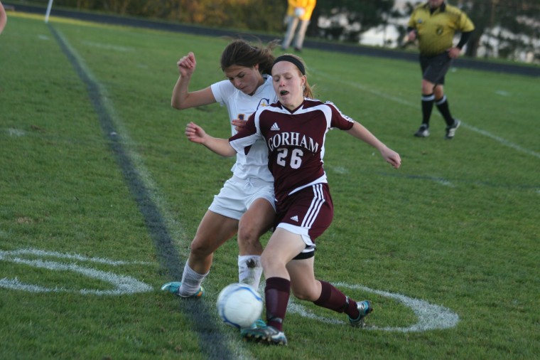 Gorham defender Libby Andreasen tries to corral the ball in the first half.