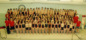 Head coach Dan St. Pierre, in the front row, second from left, stands with his 2011-12 Casco Bay Stripers swim team. St. Pierre is celebrating his 10th year with the team.