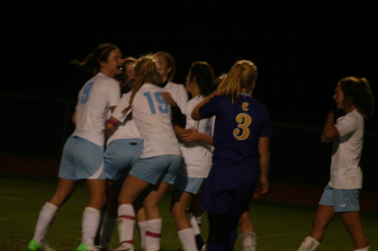 The rest of the first OT passed without incident, as did the first 14:30 of the second extra period as both sides tired and didn’t want to give up the killer mistake. It nearly happened with 30 seconds remaining when a Cheverus long ball into the box was allowed to bounce. Kneeland got her hands to the ball to just keep it out of the net, but was run into by a Cheverus player, laying on the ground for several second before getting back up and making her mark with it all on the line.