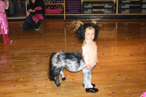 Twenty-month old Winter Rollins of North Yarmouth came to the Casco Bay Y dressed as a centuar last Friday night.