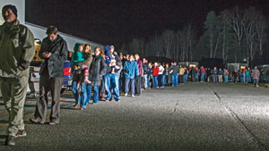 Lines stretch for hundreds of feet in and around Windham High School Tuesday as voters turned out by the thousands to cast ballots. Windham and other towns in the Lakes Region mirrored state and national results by voting for President Barack Obama, Angus King for U.S. senator, U.S. Rep. Chellie Pingree and in support of gay marriage.