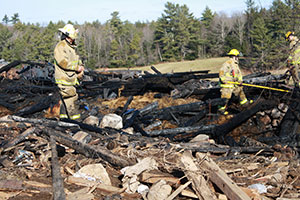 Durham firefighters look for any lingering hot spots at the scene of a blaze that destroyed a barn on Newell Brook Road on Nov. 15.