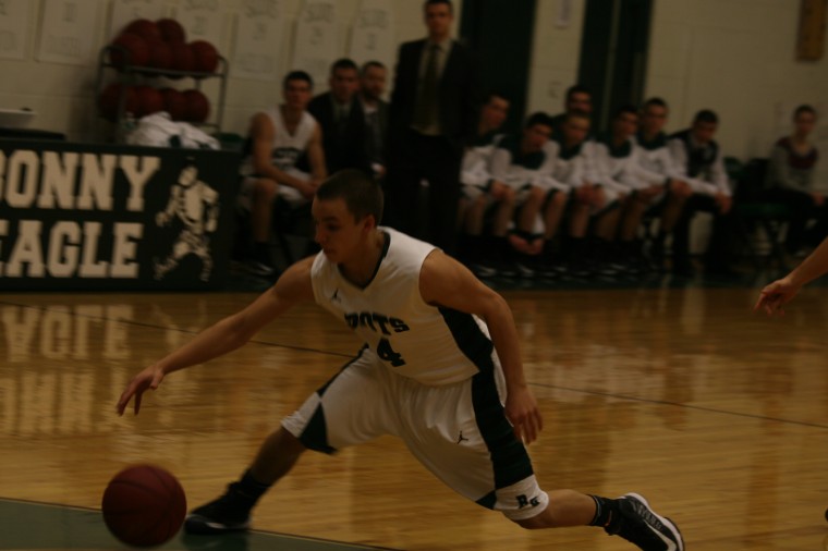 The 3-pointers were pouring in from the opening tip for both sides as the game’s first five made shots, three of them on the Bonny Eagle side, all came from deep. Thornton’s Malcolm Dopwell made the first 2-pointer on a layup with just five seconds left in the quarter as it was 9-8 Scots after one. After another Dopwell layup made it 10-10 early in the second, the Scots went on an 13-2 and looked to be pulling away before a Jeff Gelinas three and a Quinn Richardson Newton two pegged Thornton back to within six at halftime.
