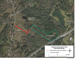 The Freeport Conservation Trust has acquired an access easement from Burr Cemetery for its Frost Gully Woods property, shown in the map above.