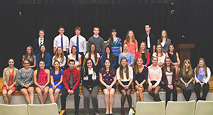 Newly inducted members of the National Honor Society at Bonny Eagle High School are, front row from left, Kendyll Martin, Ivory McDonough, Cassidy Merrill, Krista Meserve, James Patchell, Katherine Perry, Courtney Ross, Abigail Ward, Audrey Weyand, Carly Biegel, Megan Brown, Courtney Grant, and Kirsten Thomas; Middle row- MacKenzie Andrews, Emily Boyd, Victoria Cady, Leah Carter, Sierra Cooper, Anna French, Zoe Goodwin, Erin Judge, Hannah Ketch,?Haleigh Libby; back row – Spencer Hugo-Vidal, Seamus Meyer, Riley Murphy, Tyler Nelson, Allie Parkin, Jordan Ray, Garrett Swett, Taylor Wortheim. Brett Kinahan is not pictured.