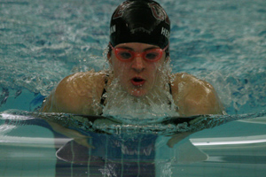 Cape Elizabeth’s Sadie Stiles swims in the 100-yard breaststroke in a meet against Westbrook last Friday. Stiles, 13th in the event at the state meet last February, won the race in a time of 1:13.55 as the Caper girls swept all the events on the way to a 124-28 victory.