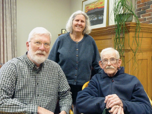 Pictured at the closing of the sale of the 156-acre Warren Woods lot are, from left, Scarborough Land Trust President Paul Austin, Becky Seel, and property owner Harvey Warren.