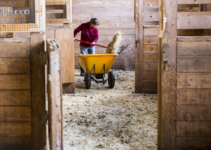 Each day volunteers clean out the stalls at the Maine State Society for the Protection of Animals farm on River Road in Windham.