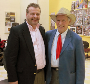 The namesake of the evening’s concert, Dr. Richard Nickerson, left, chats with local music legend Al Hawkes at Saturday night’s show.