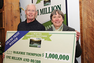 FREEPORT – During a snowy morning Feb. 8, L.L. Bean and Barclays Bank card officials announced that Marjorie Thompson of Cumberland had won $1 million as the grand prizewinner of the Freeport retailer’s Centennial Sweepstakes.