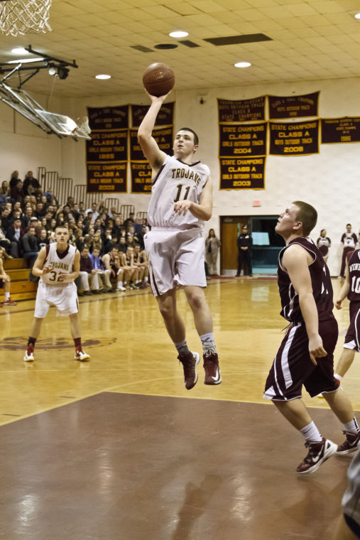 The Trojans controlled the first minutes of the third, adding five, two more by Dopwell and another three by Moses. Hodge and senior Shaun Francoeur hashed four in answer for Windham, but Thornton came right back, Richardson-Newton and Gelinas each sinking another basket. The Trojans’ lead was mounting, and by the end of the third, had grown to 38-23.