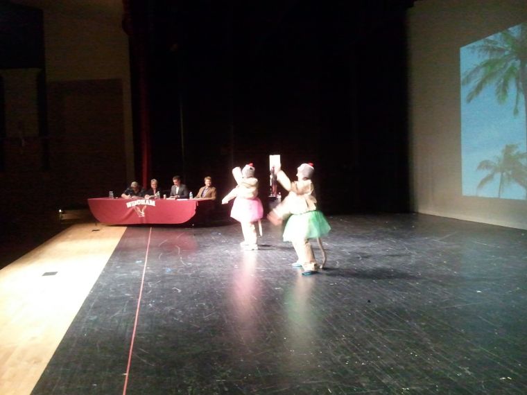 The event, which benefits Windham’s Project Graduation, kicked off with Windham-Raymond school board member Toby Pennels, Adult Education Director Tom Nash, and Windham High School secretary Debbie Hall performing a risque number to the popular song, “Thrift Shop,” by Macklemore and Ryan Lewis. After the number, the show’s host, Bill Ellis, questioned the group on the close dancing.