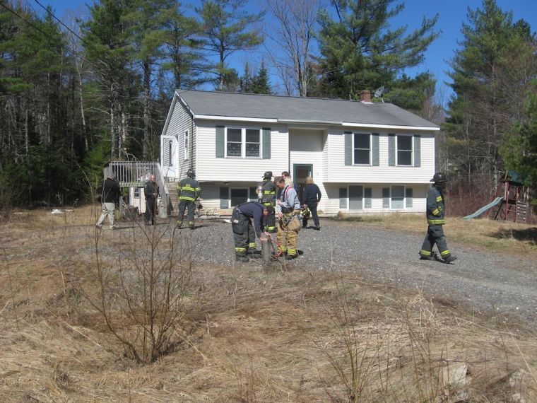 Firefighters at the scene of what was the first arson in Gorham, March 27, 2012, in a vacant home at 70 Spiller Road. File photo
