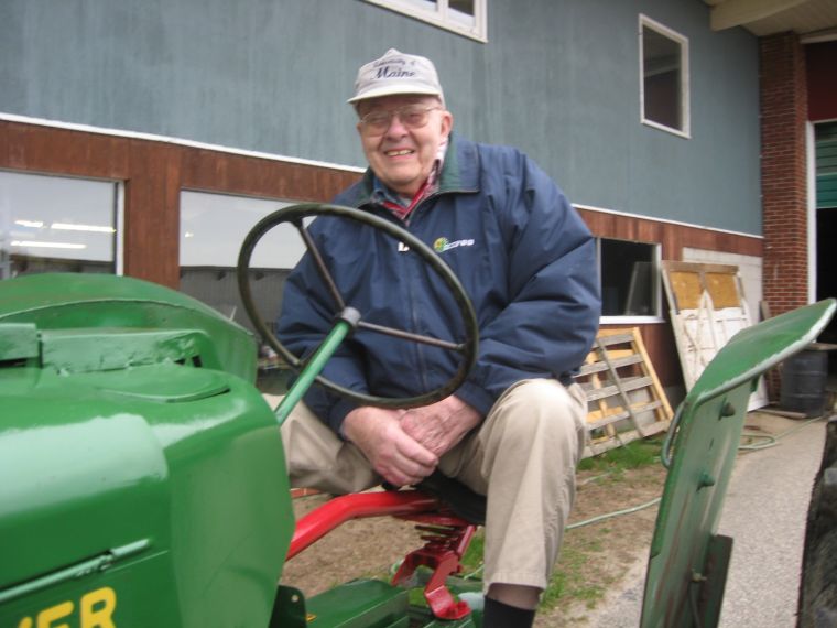 Looking robust, Rines on Tuesday easily climbed into the driver’s seat of a restored antique Oliver tractor in the yard at his Walnut Crest Farm. The 1940 tractor still sees some service in the summer hauling hay from fields.