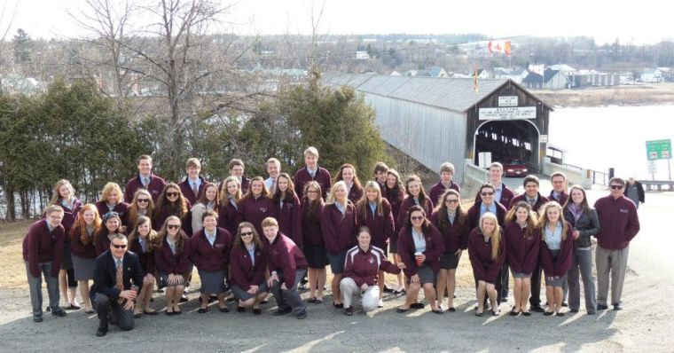 The Windham Chamber Singers have recently returned from their annual spring tour which included stops throughout New Brunswick and Prince Edward Island. Above, the Windham Chamber Singers at the world’s longest covered bridge in Hartland, New Brunswick. Each year, the choir tours the Northeast presenting school workshops, assemblies and public concerts. The choir gave a total of 10 performances during the six-day trip that took place during April vacation. In addition to performing, the choir also raised more than $5,000 for different charitable organizations including the Alzheimer’s Society, the Summerside Food Bank, the Miramchi Folk Festival and Camp Centennial in Moncton, New Brunswick. Courtesy photo