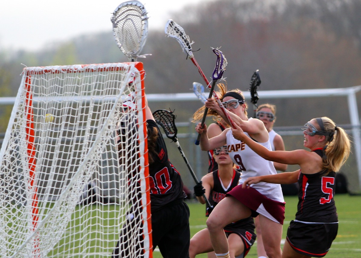 Cape Elizabeth, which came oh-so-close to a first-ever state title in the Maine Principals’ Association-sanctioned era last year (losing in triple overtime to Waynflete in the regional final), entered the 2013 campaign as a favorite and started out on fire with an 18-5 victory at Falmouth. The Capers then pulled away to beat visiting reigning Eastern B champion Freeport, 13-4 and won a crossover game at Gorham, 13-7. The Waynflete bugaboo returned, however, as Cape Elizabeth was beaten by the Flyers for the 20th straight time, 10-8, at home. The Capers answered with a 17-5 victory at Wells, but Thursday, were stunned by visiting Yarmouth, 8-7.