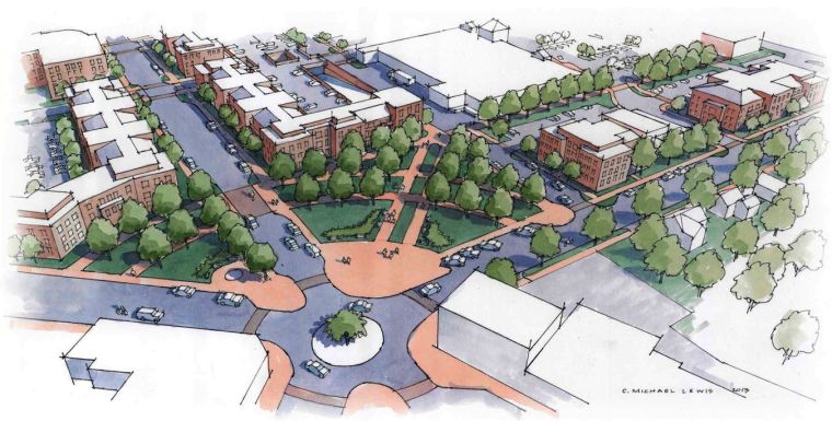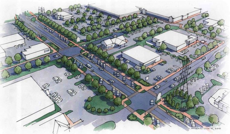 However, that meant finding a way to accommodate up to 175,000 square feet of additional commercial space, as well as 240 housing units. Following a meeting with area business owners in December, and a brainstorming session with residents and others in January, that growth target proved untenable, said Richert at last week’s unveiling of the plans created from those earlier sessions.