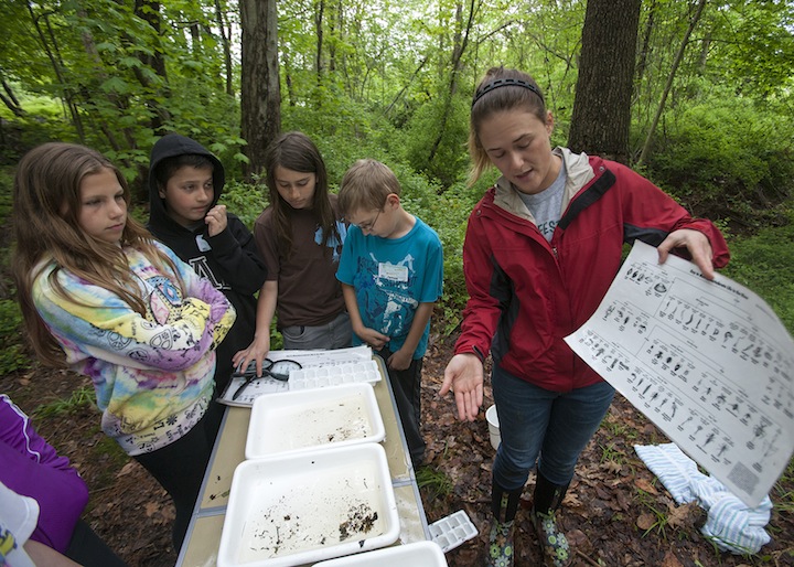 “But this type of thing, it’s more than just learning the vocabulary of the watershed and giving back on right answer. This is hands-on learning, as they take measurements and study the area and the bugs and can’t be sure until they get their results whether or not they can release their fish. Thatmakes it real for them, and I think it makes them more aware of what’s around them.”