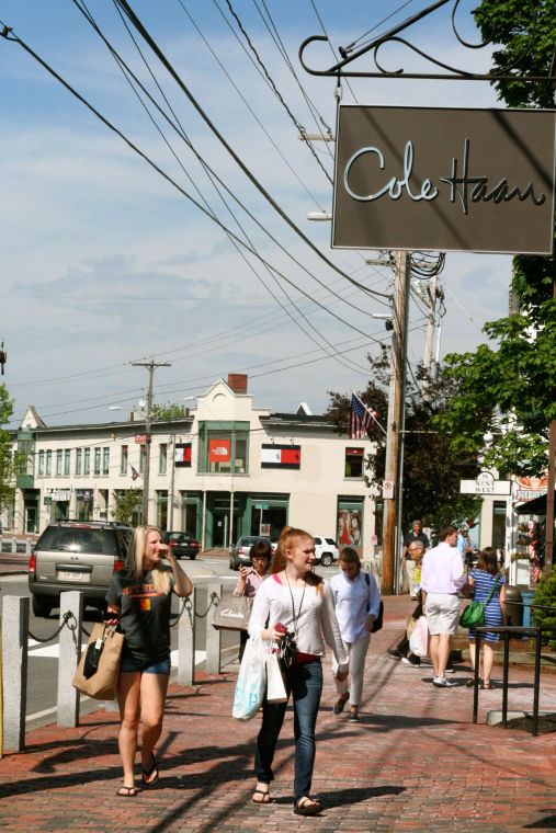Shoppers stroll along Main Street Monday afternoon in Freeport, where both retailers and tourism officials are optimistic that the summer season will produce improved sales.
