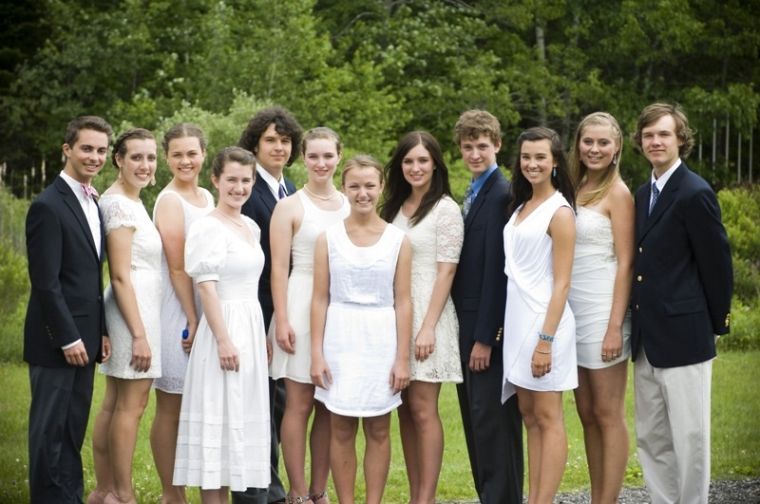 The Merriconeag Waldorf High School graduated 12 students in a ceremony June 8. They are, from left, Ben Tindall, Zoe Oswald, Teagan Wu, Skyler Samuelson, Nowell Stoddard, Zoe Chace-Donahue, Holly Perkins, Emelie Chace-Donahue, Jack Pierce, Phoebe Clewley, Devon Murphy-Anderson and Timothy Morse.
