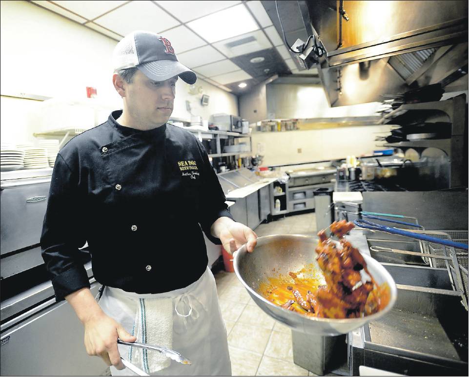 Matthew Tremblay, chef at the Sea Dog Brewing Co. in South Portland, is entering wings made with the sriracha barbecue sauce that’s already on the restaurant’s menu in the most creative category, and Sea Dogs’ buffalo wings will be entered in the traditional category. The staff is also working on an entry for the “hottest of the hot” category.