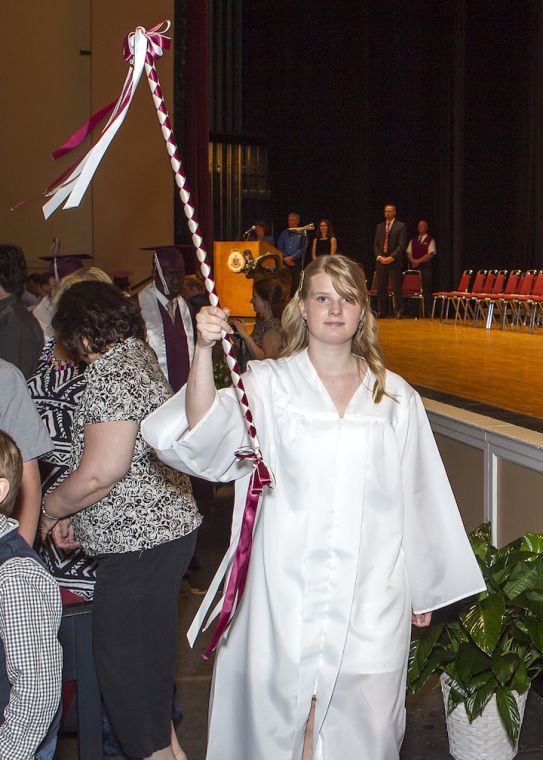 Class marshal Lydia Story leads the Gorham High School class of 2013 to the stage at the Merrill Auditorium.