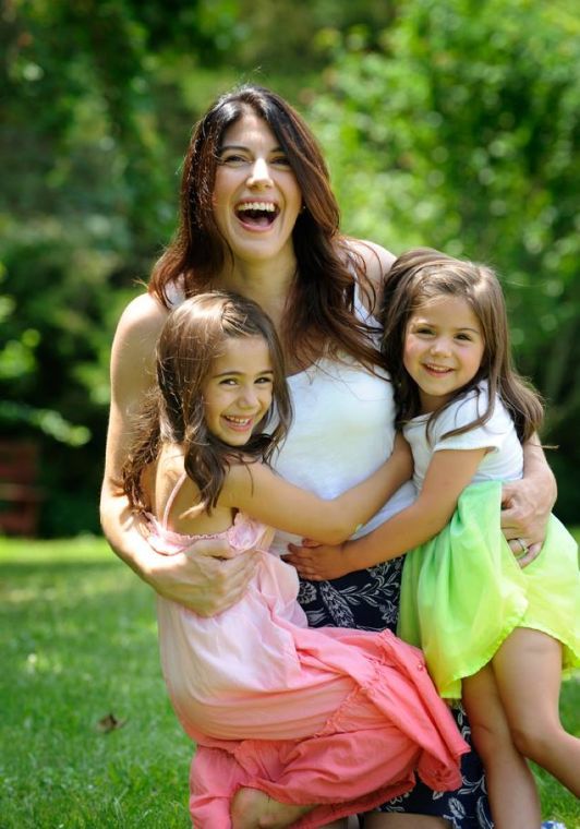 Beansprouts Early Learning Childcare Center owner Angela Garrison with her two daughters Natalie and Caitlin outside of her Yarmouth home. Garrison is hoping to carve out a niche in the competitive world of day care by offering a chemical-free environment and providing locally sourced, organic meals to the children who attend.