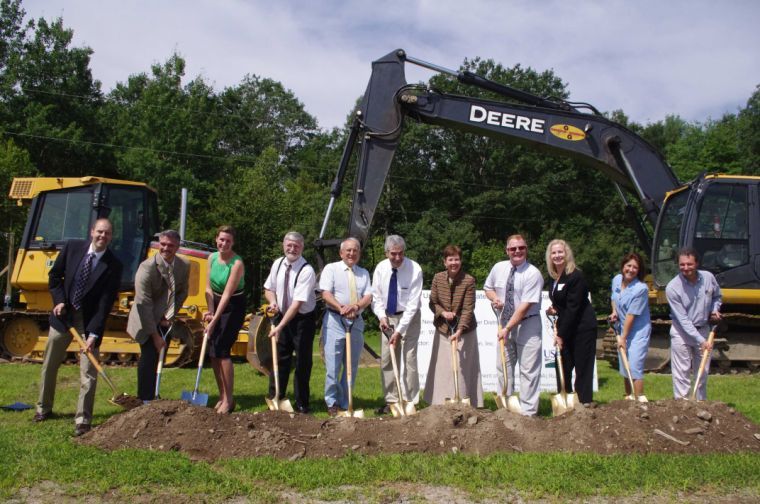 Local, county, state and federal officials gathered at the New Gloucester Fairgrounds last Friday to celebrate a groundbreaking of a new pumphouse and distribution network that will provide municipal water for Upper Village residents in New Gloucester.