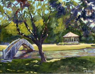 This 20-inch-by-16-inch oil painting by South Portland artist Jack Riddle, entitled “Mill Creek at Noon,” is representative of both the 190 fine artists whose work will on display during the annual Art in the Park showcase, as well as the 10-acre public space where the event is held.