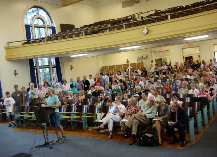Whatever comes next, the lead-up to November has been historic. Monday’s meeting was the largest turnout for a City Council meeting in living memory, according to Mayor Tom Blake. It easily eclipsed by nearly 100 the 350-person crowd that showed up for the first informational session on tar sands this past March. Monday’s session, held in the 90-year-old auditorium of Mahoney Middle School, also was the first live broadcast from a site outside council chambers at City Hall in the history of South Portland Community Television.