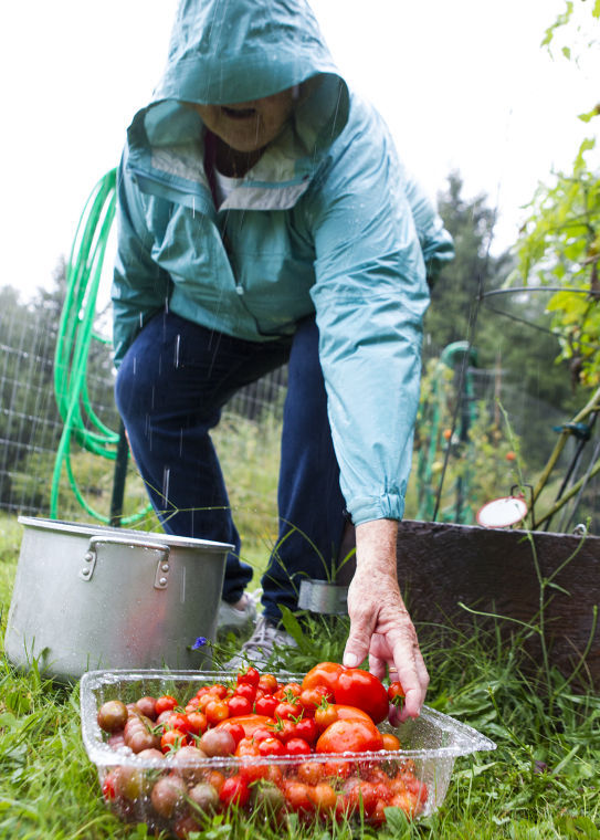 Parishioners at Prides Corner Church harvest vegetables for a local food bank from garden plots behind the church.