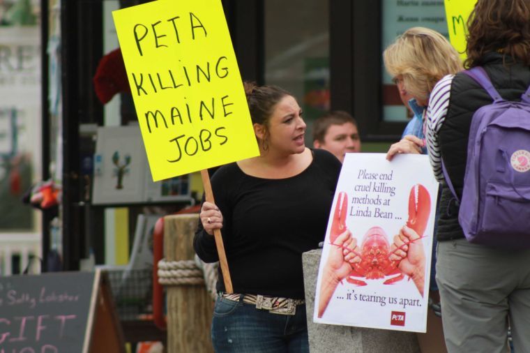 In addition to the PETA protestors, a few individuals engaged in a counter demonstration by holding signs charging the organization with killing Maine jobs.
