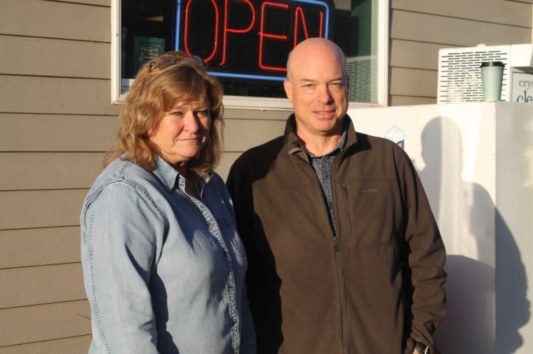 Durham residents Donna Church and Kevin Nadeau outside Church’s Durham Get & Go on Oct. 21. Nadeau is in favor of passing a bond package Nov. 5 that would renovate and upgrade Freeport High School, while Church is a staunch opponent. Nonetheless, Church has encouraged Nadeau to speak to her customers about why he is in favor of the bond. “I’m not opposed to hearing both sides of the argument,” said Church. “I just don’t feel this is necessary during a time when money is tight for everyone.”