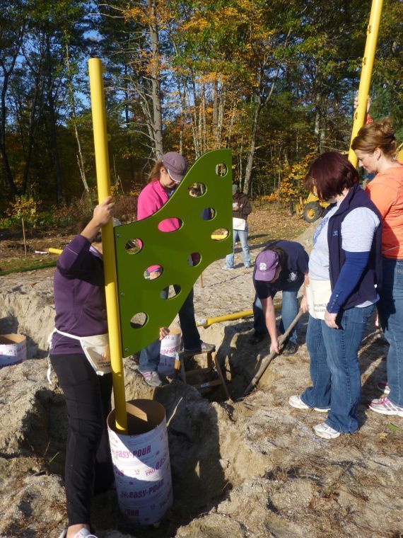 STANDISH – After more than three years of fundraising to build a playground on Johnson Field in Standish, community volunteers as well as the town’s recreation committee and playground committee members, finally put their shovels in the ground and spent the day erecting the new 50-by-80-foot playground on Route 35.