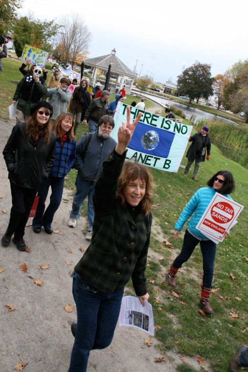 Members of the environmental group 350 Maine and other proponents of the Waterfront Protection Ordinance on the Nov. 5 ballot in South Portland, rally in Mill Creek Park Oct. 26.