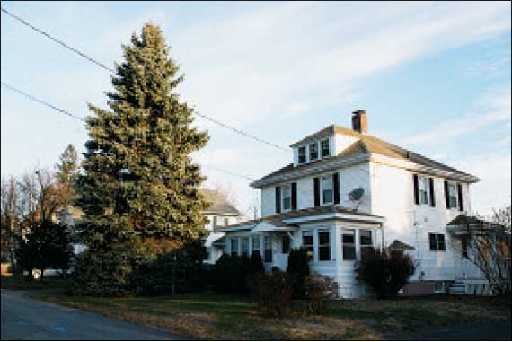 Portland’s 2013 Christmas tree, seen just before being harvested from its home of 60 years, on McLean Street in South Portland.