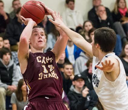 Cape Elizabeth junior Ethan Murphy goes up for a shot.